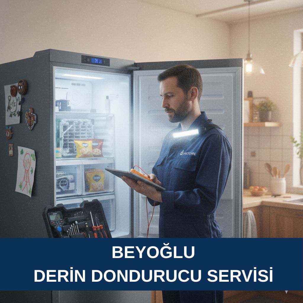 Beyoğlu Derin Dondurucu Servisi, motor arızaları, soğutma sorunları, su akıtma, termostat veya elektronik kart problemleri gibi tüm arızaları profesyonel olarak onarır.